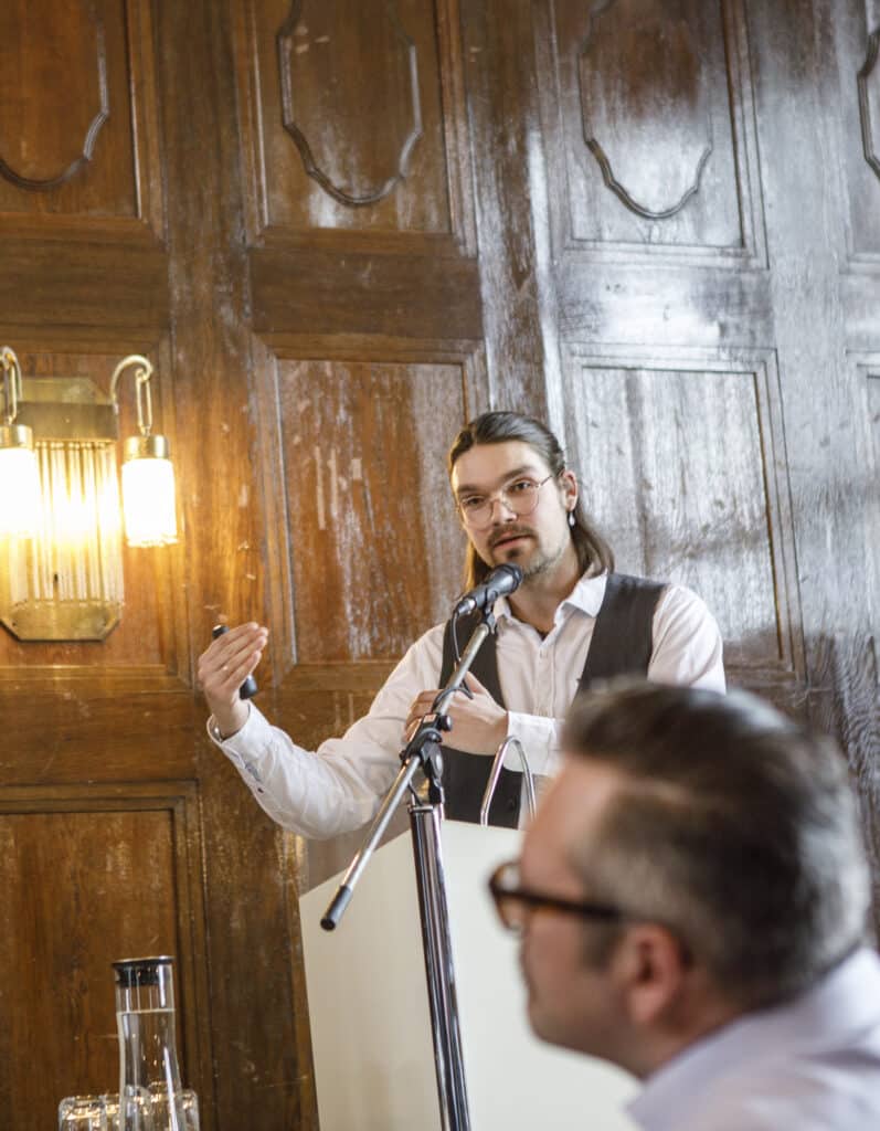 Dr. Gerrit Deutschländer zeichnete die Geschichte der Äbte von Kloster Posa nach, Prof. Dr. Ute Engel widmete sich dem Ziegelfries, Holger Rode präsentierte aktuelle Grabungsergebnisse und Christoph Waren stellte den Glasperlenfund vor.